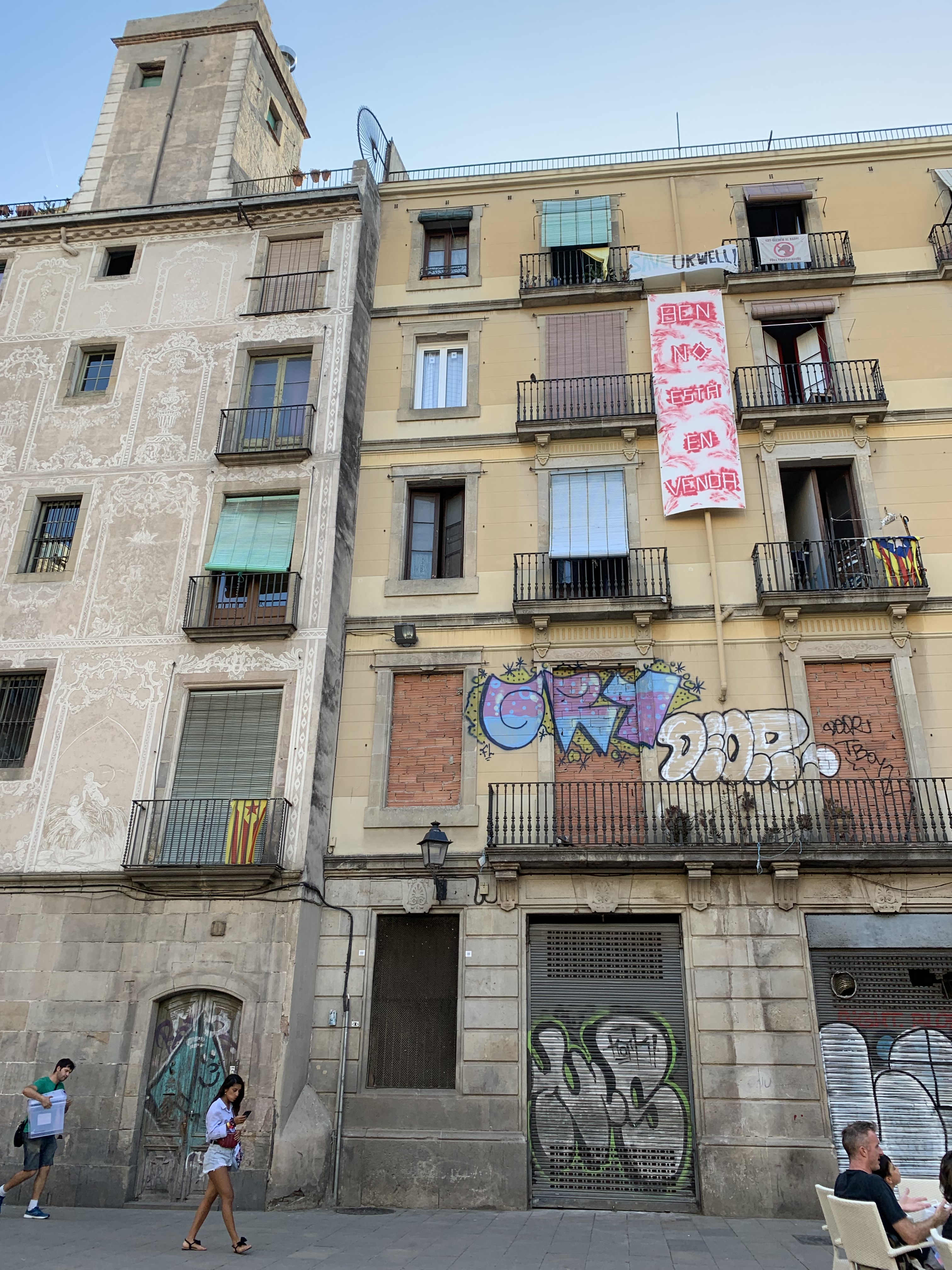 As soon as I saw this I knew I needed to use it. The banner reads “Barcelona is not for sale”. This banner is fighting the high rents and the amount of people buying properties for tourists to rent rather than ensuring the people who are native and already live in Barcelona have homes. This issue can put Barcelona in a more negative light because it brings attention to a problem that tourists, or locals in Barcelona may have not known about. It also shows that there is a problem in Barcelona when it comes to people finding affordable housing.